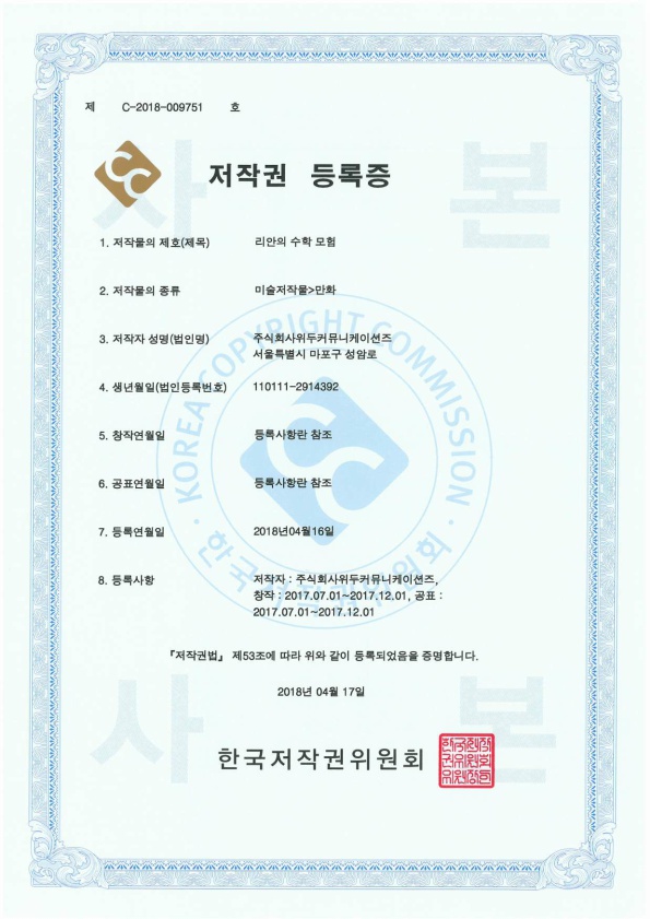 [한국/저작권] 리안의 수학 모험 페이지 정보 작성자 WeDu 댓글 0건 조회 5,834회 작성일 19-05-30 19:07 본문 2018-04-16 저작권 C-2018-009751 리안의 수학 모험 / 미술저작물>만화 List Previous[한국/저작권] 길리 19.05.30 Next[한국/저작권] 신입사원조기전력화 이러닝 콘텐츠 19.05.30