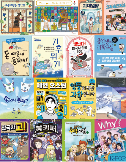 △‘북키퍼’ 시리즈(그로스만) △‘리안의 수학 모험’시리즈(위두커뮤니케이션즈) △‘Why? K-POP’(예림당)
